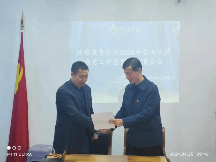 4月25日上午9点,继续教育学院在六楼会议室召开了学院全面从严治党暨警示教育会议,党总支书记李忠端主持会议,学院全体党员参加了此次会议。