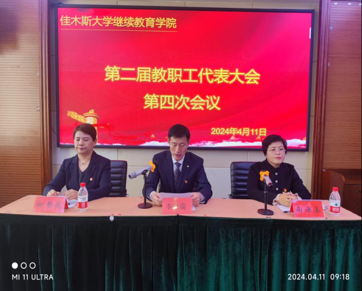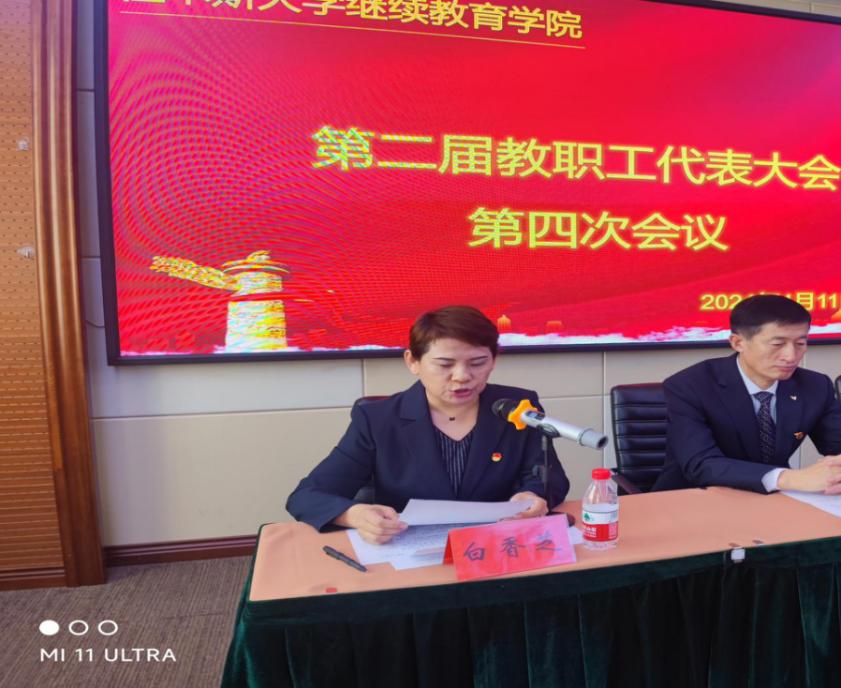 4月11日上午8点30分,继续教育学院第二届教职工代表大会第四次会议在会议服务中心308会议室召开,副院长白香芝主持全体会议。