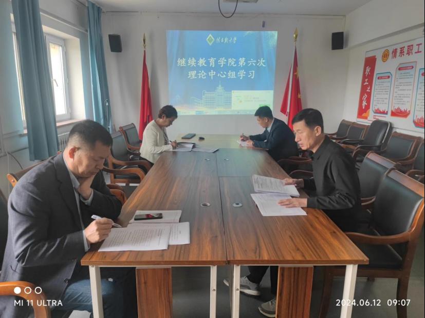 6月12日,继续教育学院党总支理论学习中心组在学院602室开展2024年第六次理论学习。此次学习主要内容: