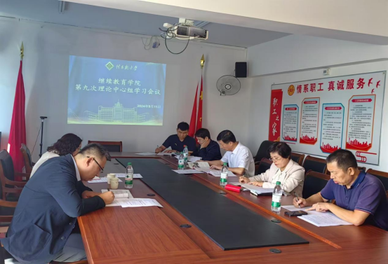 9月11日,继续教育学院党总支理论学习中心组在学院602室开展2024年第九次理论学习。党总支书记李忠端主持会议,院长南海玉、副书记赵智勇、副院长白香芝出席会议,校党委常委副校长隋晓冰、组织部副部长王连洋列席此次理论中心组学习会议。