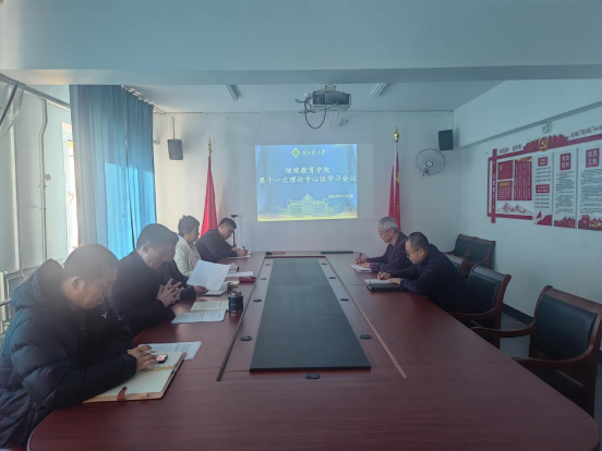 11月20日,继续教育学院党总支理论学习中心组在学院602室开展2024年第十一次理论学习。党总支书记李忠端主持会议,院长南海玉、副书记赵智勇、副院长白香芝出席,党支部书记姚石、吕俊龙、初阳列席会议。