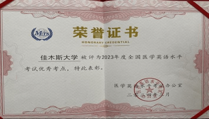 全国医学英语水平考试(Medical English Test System,简称METS)是由国家卫生健康委人才交流服务中心和中国教育国际交流协会联合举办,面向我国医药卫生人才(医、药、护、技)的全国性专业英语考试。佳木斯大学从2019年开始承办此项考试,考生已经累积近千人,今年再一次荣获全国医学英语水平考试优秀考点称号。继续教育学院白香芝副院长、李姝玉老师获得全国医学英语水平考试优秀考务工作者称号。
